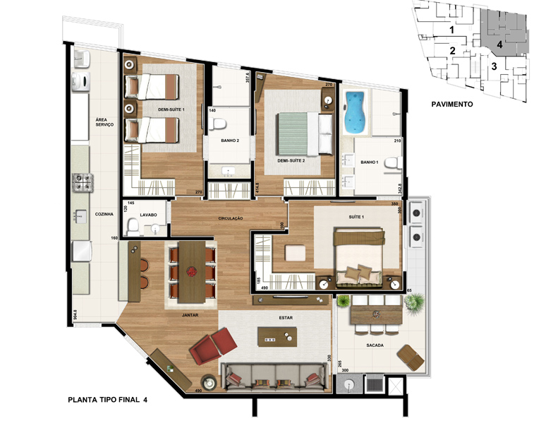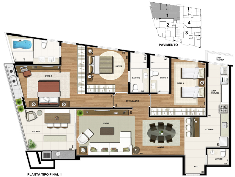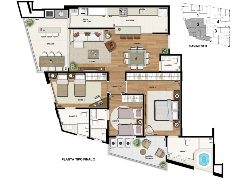 Área privativa: 126,04 m²