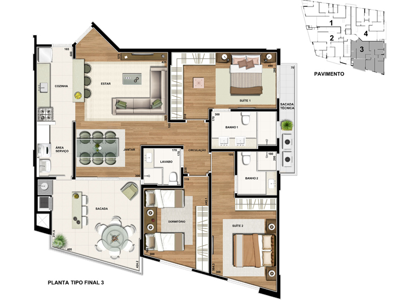 - 3 dormitórios (2 suítes)